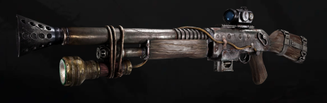 猎人们以各类零件拼凑打造出武器,然而这些武器却格外耐用且坚固。经金属加固的枪身搭配厚重的金属枪管,使得它在任何恶劣环境中作战都毫无问题。那巨大的喇叭口枪口,在发射时会产生震耳欲聋的声响,这种强大的声音对动物形成强烈的震慑,让它们呆在原地,不敢逃窜。