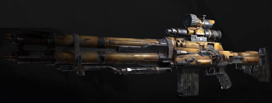 个传奇猎人使用过的武器这把半自动狙击步枪专门装配了电子增压装置让枪口初速极高电子增压带来的极大动能使子弹击中目标瞬间会造成巨大的撕裂伤害