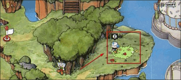 2、在此处,玩家能够瞧见蓝色的茶杯头正在进行野餐,此时玩家需走上前去与它互动,从而触发剧情。