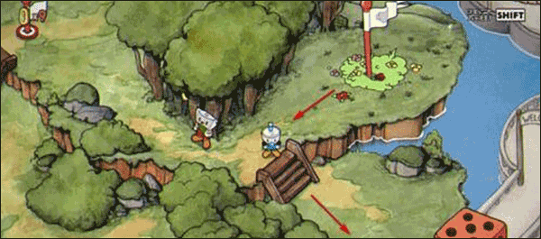 1、点击运行游戏后,玩家在此处可先跨过桥梁,抵达白旗所在位置。