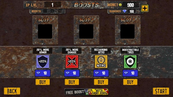 1. 游戏开局时,您可挑选自己的战车,还能在此处消耗钻石来增强战车的初始威力。