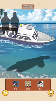 2、把下方的老公和闺蜜拉到船上,把妻子拉到水中。