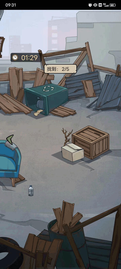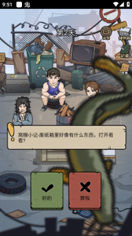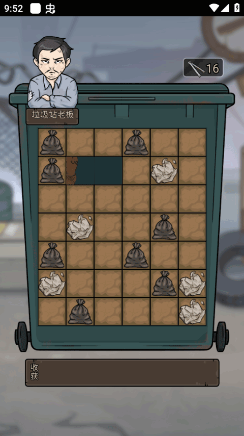 8、要是有翻垃圾箱的机会,一定要去尝试一下。只需使用拾荒工具,点击下方的小方块和垃圾袋,就能碰碰运气,说不定会出现食物或者其他宝贝呢。而且,拾荒工具无需看广告,可免费无限获取哦。