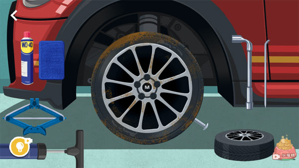 2、在轮胎的附近有很多的工具你需要按照步骤一步一步的换好轮胎。