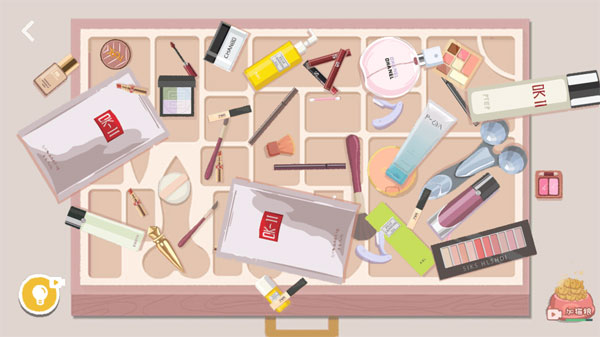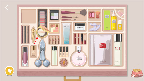 1、依旧选择“首席收纳”里的第一关神仙姐姐,你得把化妆盒里的物品放置到指定地方,完成收纳动作。