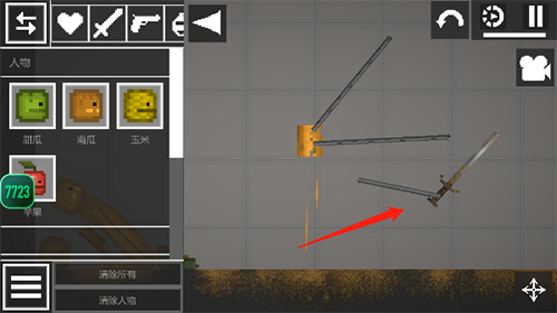1、进入甜瓜游乐场游戏界面,将武器拖动到角色下方。