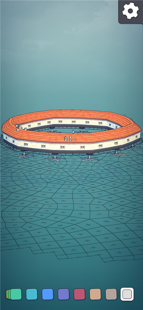 2、点击右上角齿轮按钮打开设置,点击新建,玩家可在水面上建造房屋;
