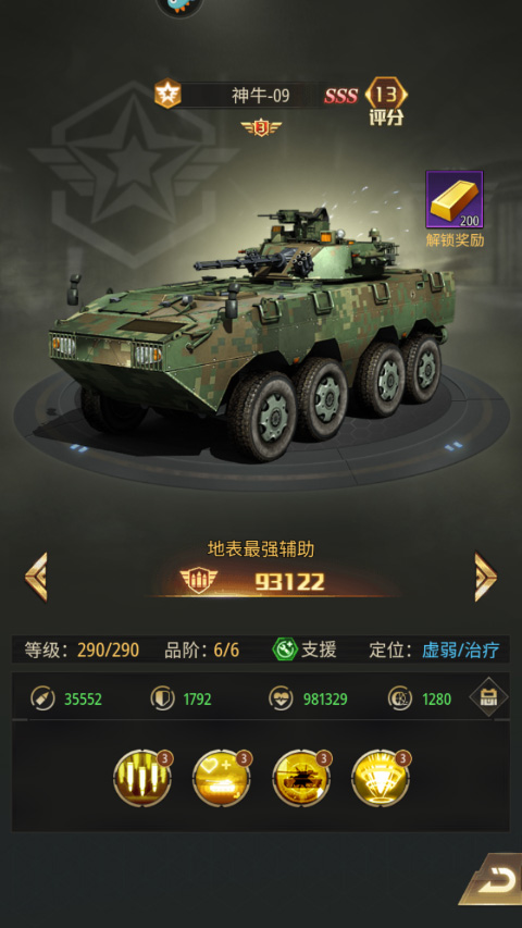 -优点:给队友加能量,增伤,加血,当前最好的辅助战车之一。