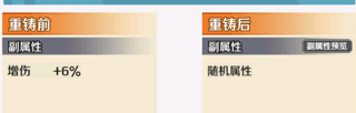 ④当装备强化至 +6 或 +9 时,会解锁副属性。副属性具有随机性,且不同装备部位的副属性随机范围有所不同。若选择装备重铸,能够重新刷新装备的副属性。