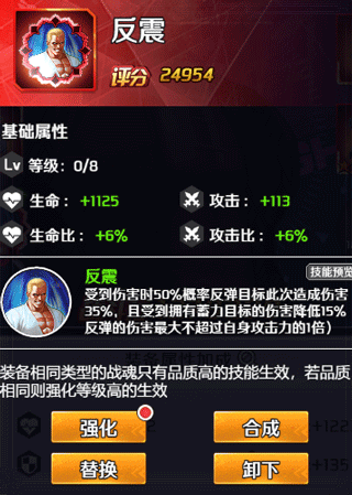 战魂属于中后期相对侧重的追求方向,每个英雄最多能装备2个。不过,合理搭配战魂能发挥出超乎想象的强大效果。就拿山崎龙二来说,他本身定位是反伤坦克,要是给他配上一个反震战魂,便能给敌方带来意想不到的反伤震撼!
