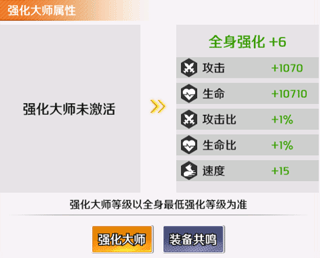 ③装备可以进行强化,强化最高也是可以达到12级,如果全套最低强化等级达到一定的等级,会有强化大师加成;