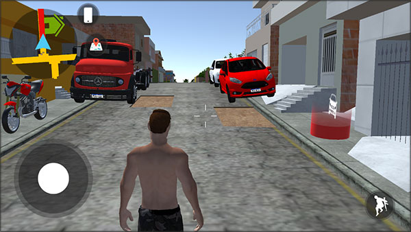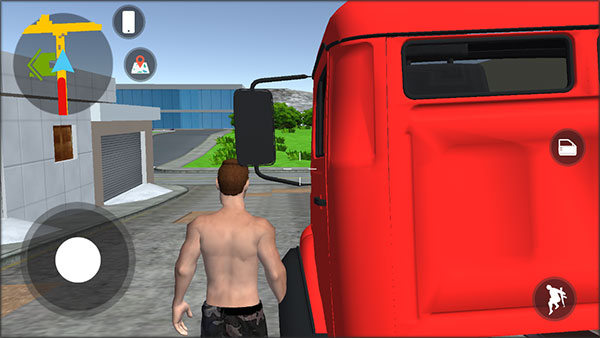 1、先下载并安装好低速汽车模拟器,安装完成后进入游戏。进入游戏后,通过左边的轮盘来控制角色移动,利用右边的按钮控制角色跳跃,滑动手机屏幕则可控制视角。
