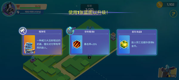 5、成功解决敌人后,我们会获取增益蓝图,从这些蓝图中挑选一个,以此提升整体战斗力。