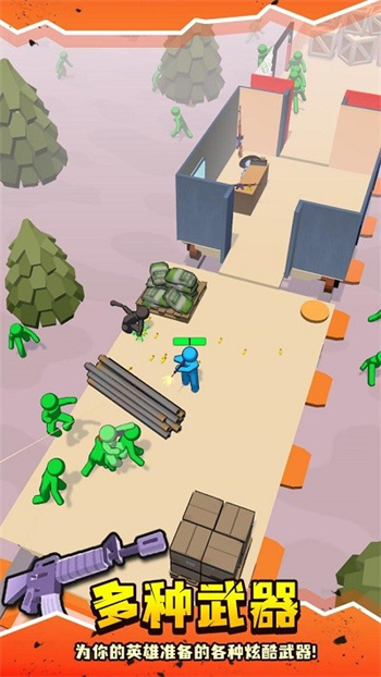 1、你能够与成群的僵尸展开对抗,通过射击各类僵尸来收集不同资源,进而强化你的火车并装备武器。