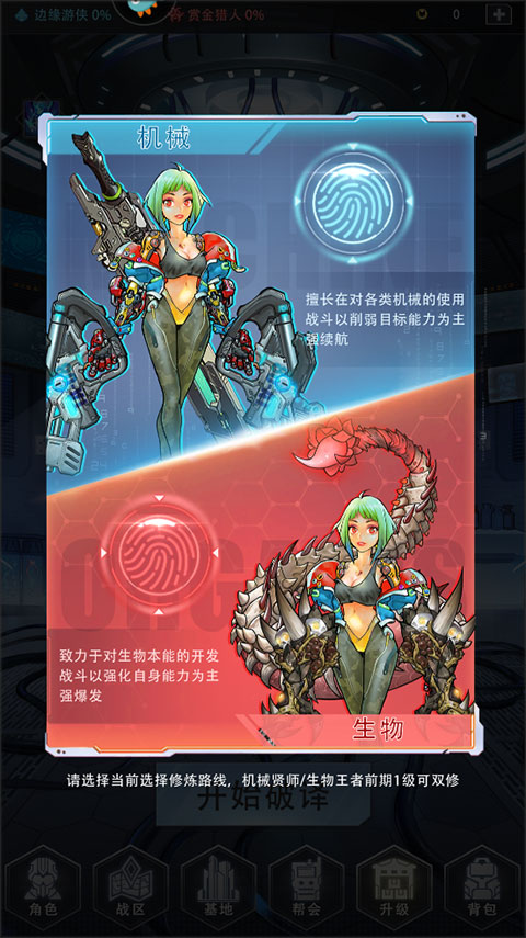 3、根据你玩的路线选择机械或者生物两大升级路线。