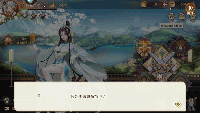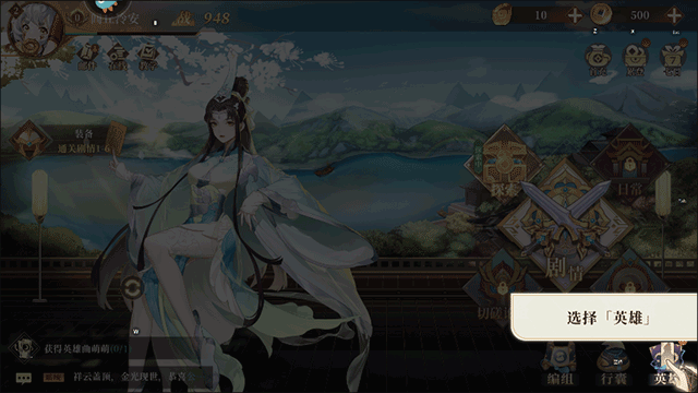 2、当一段剧情结束后,玩家会收到提示,告知其需要招募一些新英雄,此时我们选择“选择英雄”的按钮选项。