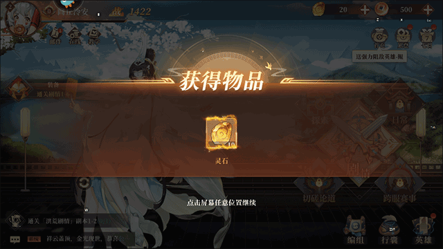 7、最后,玩家可以在这里点击任意一处来收获属于你的灵石奖励。