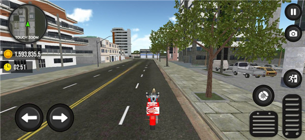 4、上车之后可以开始操控摩托车,左边为方向按钮,右边为油门和刹车,