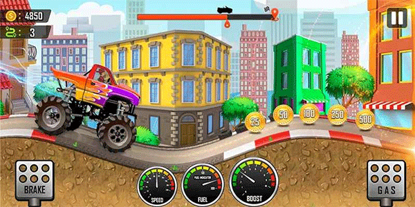 除此之外,这款登山赛车越野赛游戏的操作极其简便,仅设有刹车与油门两个按键。玩家只需灵活操控这两个按键,就能驱使汽车持续向前行驶。在行驶过程中,还可以收集金币与汽油,而收集到的金币能够用于解锁更多汽车与地图,让你尽情感受别样的游戏乐趣。感兴趣的小伙伴们,赶紧下载体验一番吧!