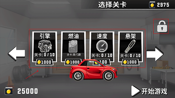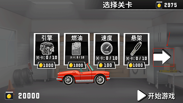 6、金币可以用来购买各种汽车,也可以为汽车零件进行升级