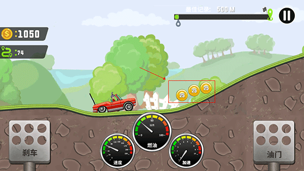 4、在前进的过程中,还会出现大量金币与汽油。当汽车燃油不够时,就能通过收集汽油来补充。