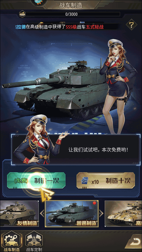 5、在战车制造工厂中,找到并点击“制造一次”的功能选项;