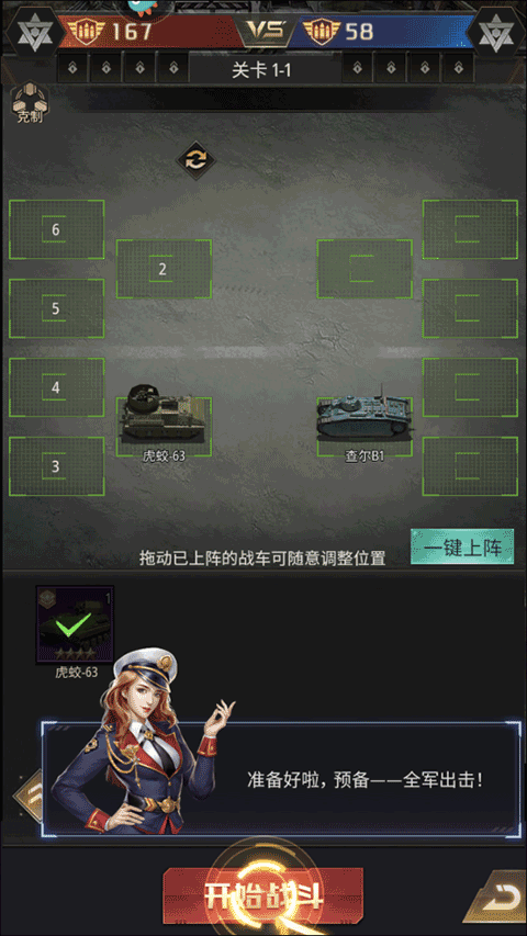 10、在战场准备阶段,选好你的战车,然后找到并点击“开始战斗”这一功能选项。