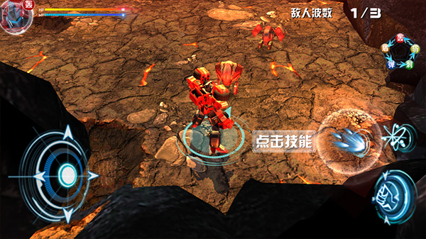 进入游戏后操控页面左下角的控键进行机甲移动