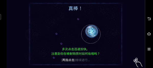 3、多次快速得点击屏幕可迅速加速,但会在喷射物质的同时缩小体积;