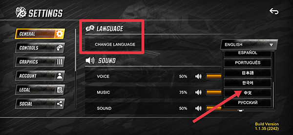 2. 接着点击language右侧的语言栏,从中找到中文选项并点击,就能切换成中文。