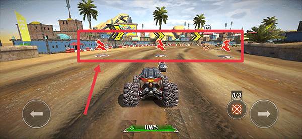 3、游戏途中会出现火箭和助推器能量,你需要操控汽车去获得它们