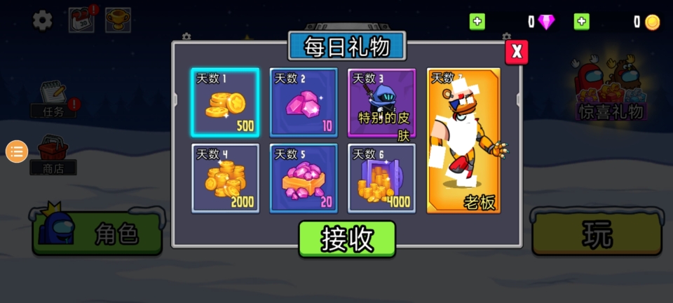 1、进入彩虹朋友怪物盒子最新版本游戏前,领取【每日礼物】