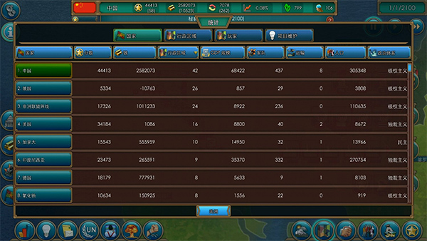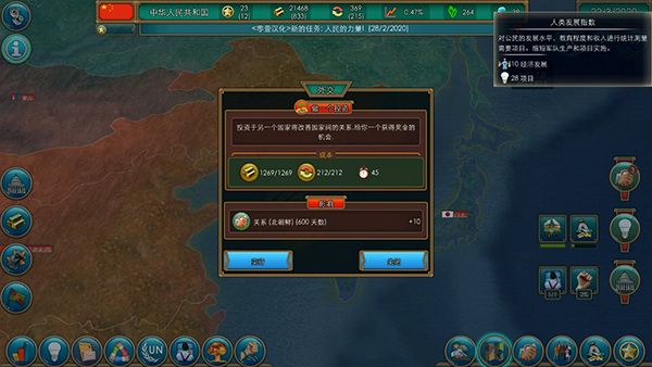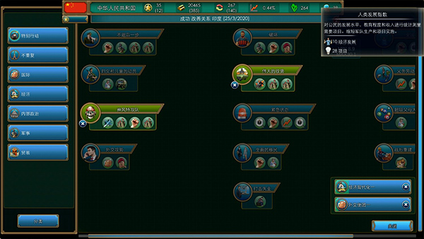 页面右侧呈现的是各类可供参与的事项,通过合理利用这些,助力你的国家发展壮大。