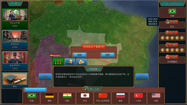 接着,你可以挑选一个国家作为主体,同时也能够先浏览一下新手教程。