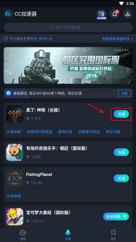 1,首先打开CC加速器,然后找到奥丁神叛手游官方正版,点击右侧加速;