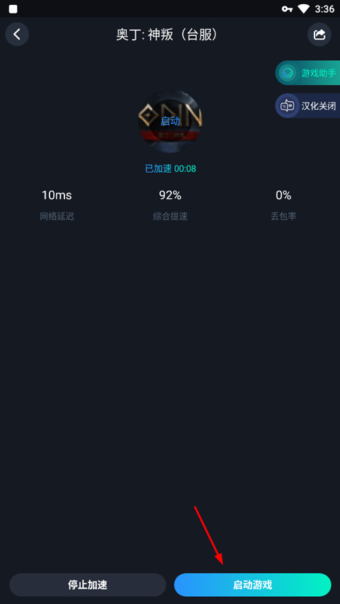 2、等待加速完成,点击启动游戏;
