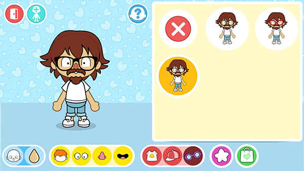 6、当进入角色diy界面后,就能自主对角色的性别、肤色、发型、眼睛、衣服、帽子等进行设计。