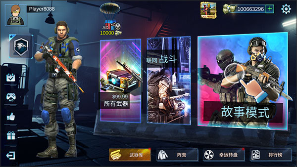 1、下载安装好子弹狂暴手游,进入游戏首页,点击故事模式进入。