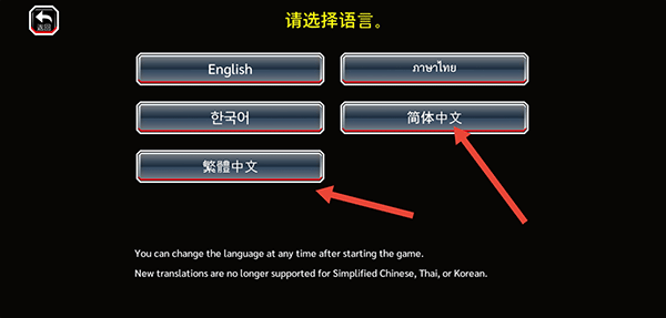 2、完成世界选择后,还需进行语言选择,玩家依据自身需求选择简体或繁体即可。