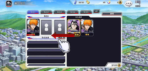 8、选择后的角色需要安排在队伍中才可以使用