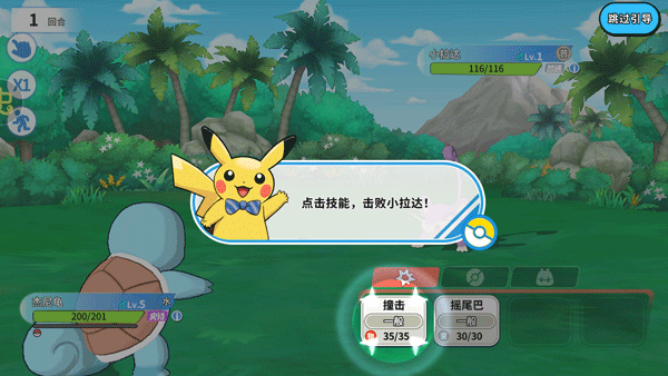 7、点击场景跟随选项,杰尼龟就可以跟着我们一起冒险了