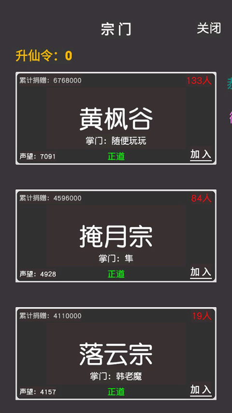 升仙令:用于加入门派,可通过挑战榜挑战胜利、秘境掉落获得。