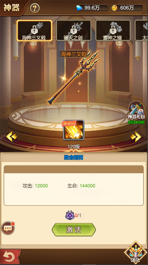 游戏中有一个特殊的养成系统存在,那即是神器,玩家可通过激活神器来解锁神器的使用权限。