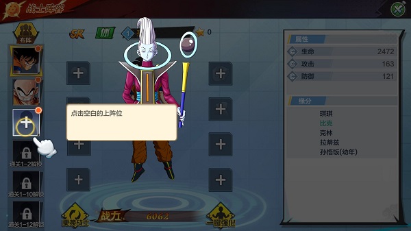 返回主界面,点击“阵容”,选择“+”上阵你已获得的龙珠角色。