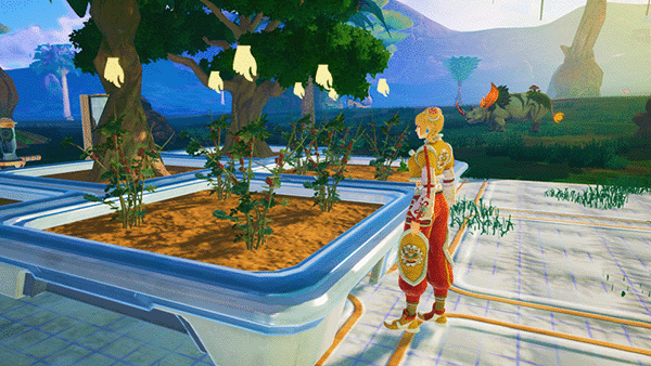 获得植物种子后,即可将其种植在各类「种植盆」中。刚种下的植物处于幼苗状态,需要精心呵护才能长大,此时可以使用「水枪」对其浇水,即可催动植物开始生长。