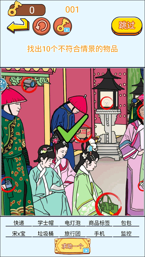 2、在这里,玩家就可以开始找茬了,第一关还是挺简单的;
