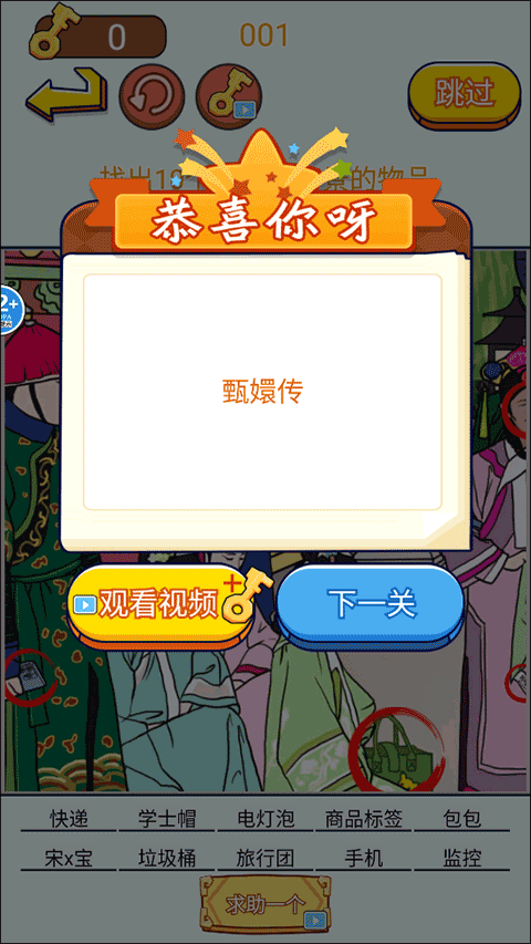 3、当玩家找齐所有物品后,便可选择并点击“下一关”选项,进入下一个关卡。