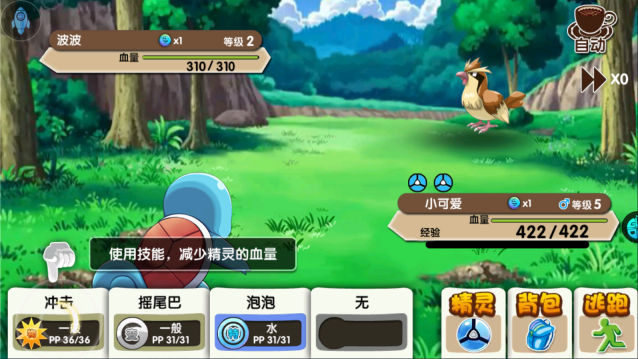 1、战斗过程中,若我方精灵处于劣势,可点击右下角的精灵按钮,更换上阵精灵。