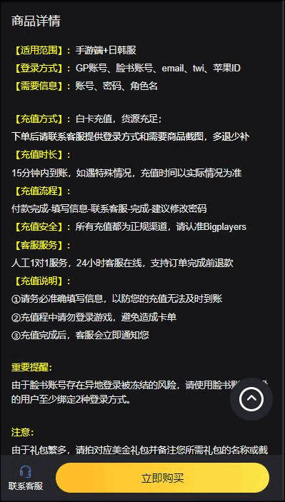 注意:务必认真阅读充值说明,针对脸书账号需格外留意。要是出现充值未到账的情况,请尽快与客服取得联系以解决问题!