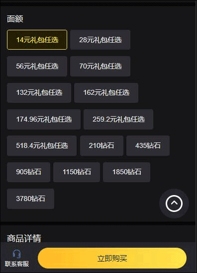 2、接下来,在充值面额区域挑选您想要的面额。要是是礼包任选的情况,可通过下方表格进行确认;若是充值钻石,就无需确认。